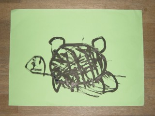 國井さんは、絵を描くことが大好きなお友だちだと思います。いつも描画材料を身につけているようにも思います。木片で運動場に線を引いて遊ぶことも大好きなのでしょうか。