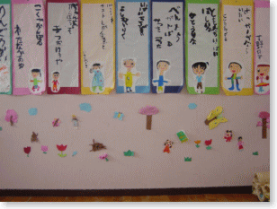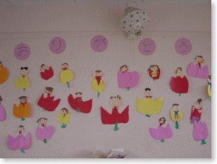ゆりぐみのおへやにも春がやって来ました。画用紙で春のものを作りました。春になったら一年生楽しみですね。