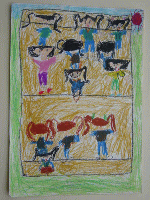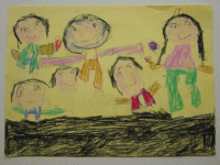 その窓の中にはクレパスで描いたみんなが乗っています。