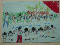 みんなではないちもんめをしておんなのこがおとこのこをげっとしたところ。