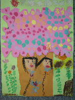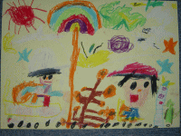 大好きな人と自分をクレパスで描きました。