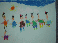 1年間の中でいちばん楽しかった思い出をクレパスで描いてしゃぼん玉にして飛ばしました。