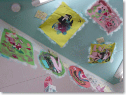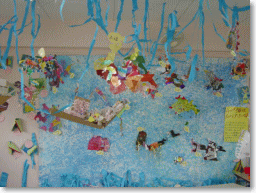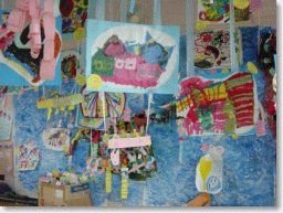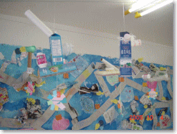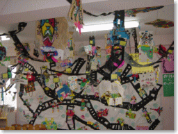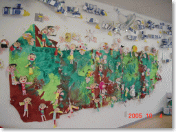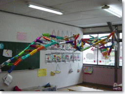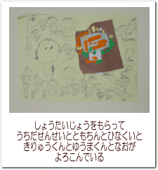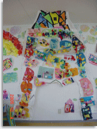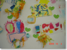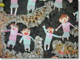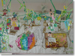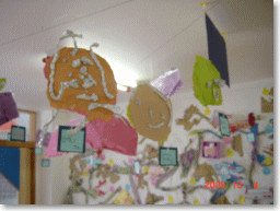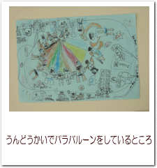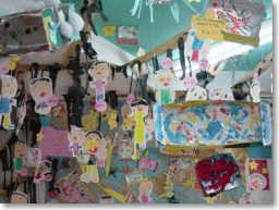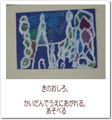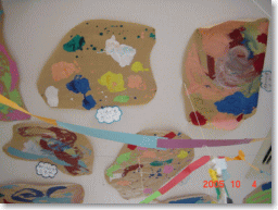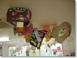乗り物に画用紙で作った自分達を乗せて出発!!