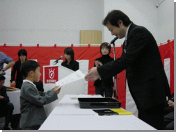 一生懸命描いた絵が見事入選して、表彰式に出たお友達。