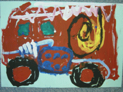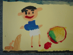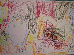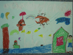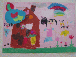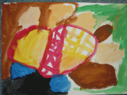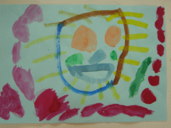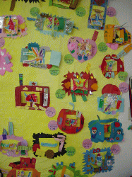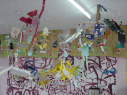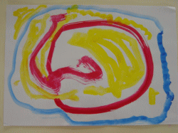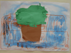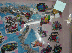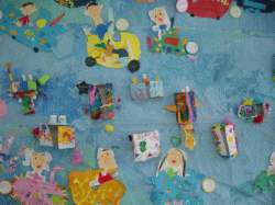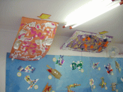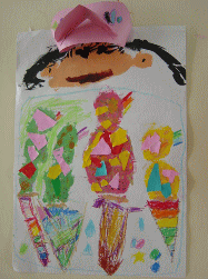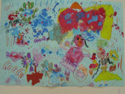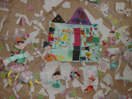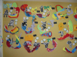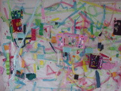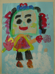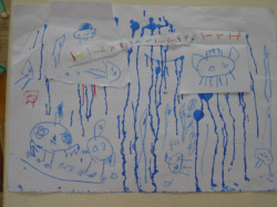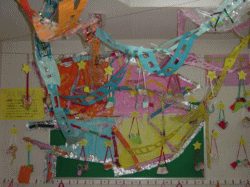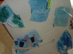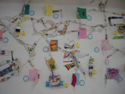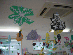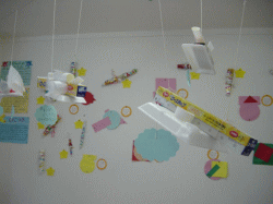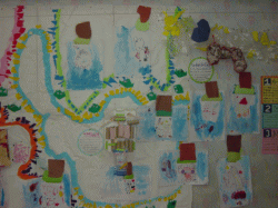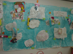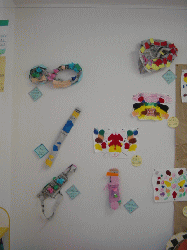 えのぐでにじみ絵をした後にお花紙、折り紙、紙テープ等