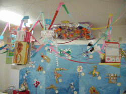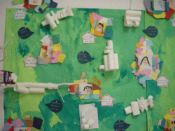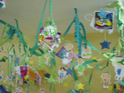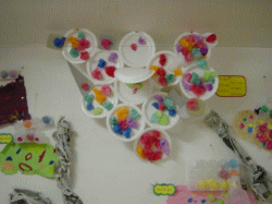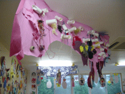 そこに画用紙や折り紙、廃品などをつけて