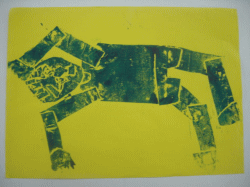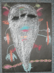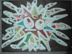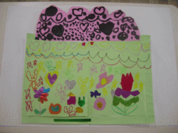 お花紙やダンボール紙やコンテで模様をつけ