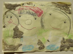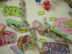 好きな形を作り絵の具とボタンで飾りをつけました。