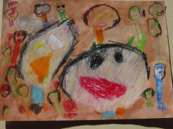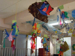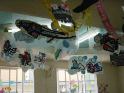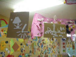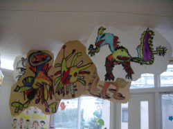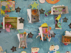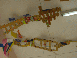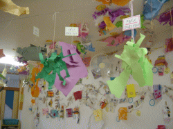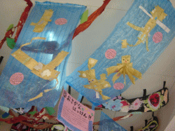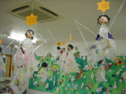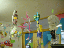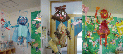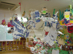 みんなで廃品、画用紙を使ってお友達を作りました。