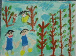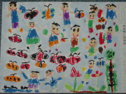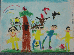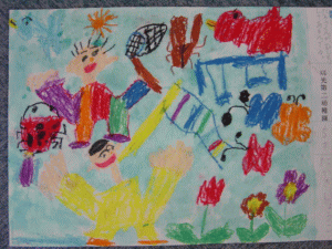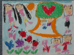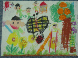 私とお友達と、お母さんとてんとう虫が飛んでて、