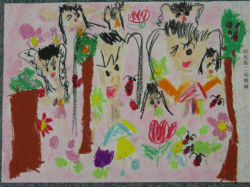 いろんな動物とか虫がきて、一緒に遊んでいる