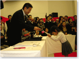 表彰状を受け取りました。大きな表彰状にとても嬉しそうでした。
