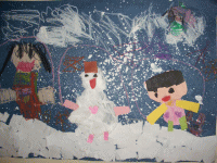 お友達と雪だるまとママが遊んでる。