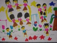 子供達がみんなで手をつないで遊んでいて、