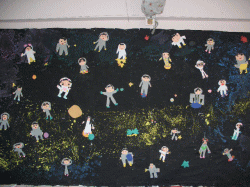 宇宙服を着た自分を画用紙で作りました。