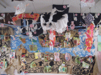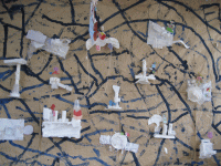道路やお家を大きな茶紙に描き、