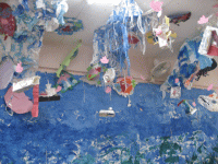 いろいろな素材で大きな波を表現しました。