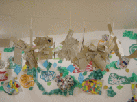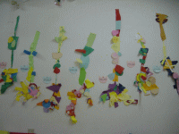 長細い画用紙をまるめたり階段状にしたもので