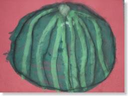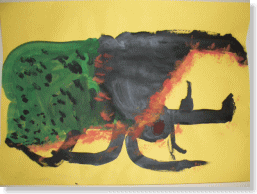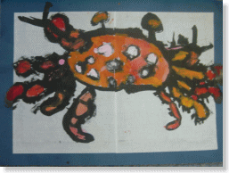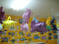絵の具でお空に住んでいる生き物を描きました。