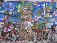 茶紙がトイレットペーパーの芯で枝を作りました。