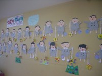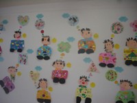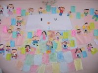 | みんなのなわとびをつなげた お花付きのゴールテープができました。 いろいろな事にチャレンジし、 みんなお兄さん、お姉さんらしくなりました。 |