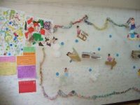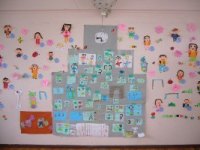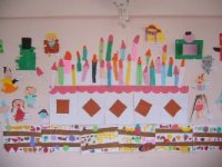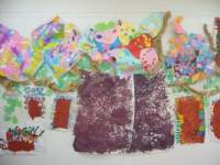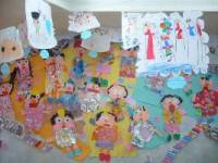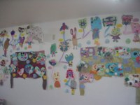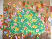 | 雪がとけて、緑の山にたくさんんのお花が咲きました。 もも組のみんなはお花を作りながら、 春の訪れを感じていたようです。 |