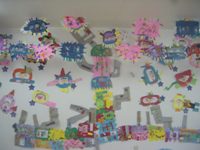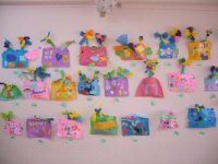 | 乗り物がいろんな所へ お出かけしても迷子にならないように、 たんぽぽ組の目印を作りました。 |