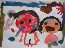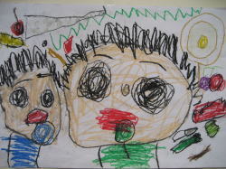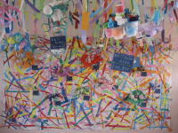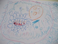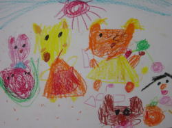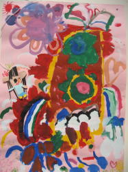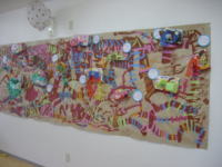 大きな紙に、ぐるぐるジャングルの「つた」を描き、
