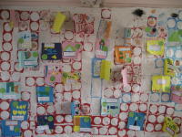 丸めた新聞紙に巻きつけて、大きな扉を作りました。
