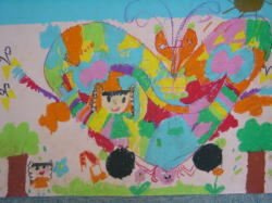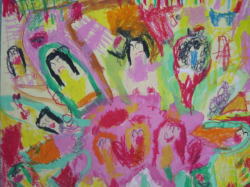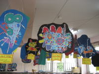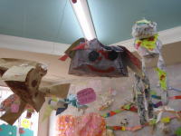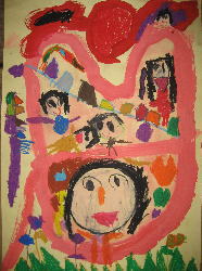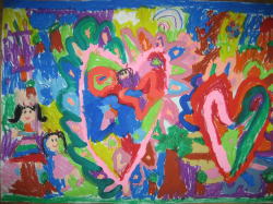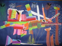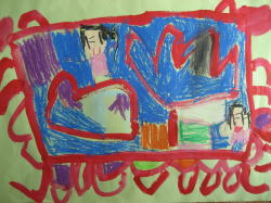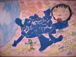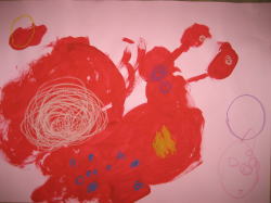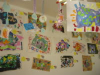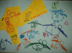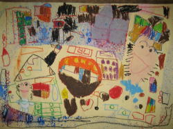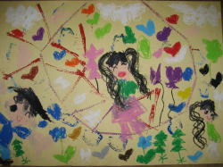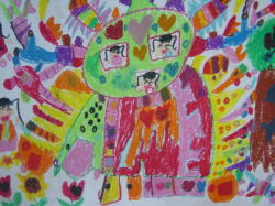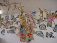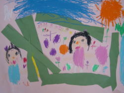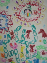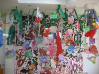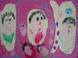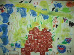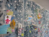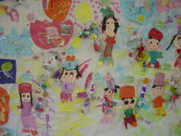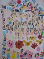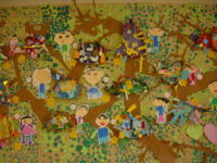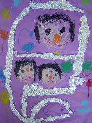 大きな茶紙に絵の具で描き、