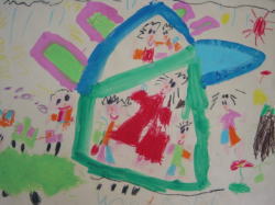 このおうちが素敵やから、皆ニコニコしてるねん、おうちの中で紙ですべり台を作ってすべったりできる。皆このおうちが好きやから、いつも遊びに来たいって言ってるねん。