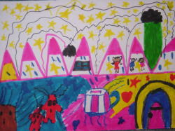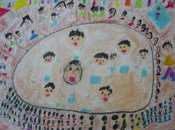 たらし絵をして世界を作り、