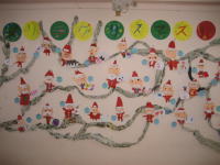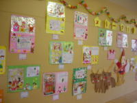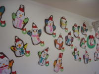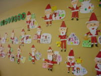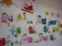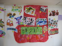 ダンボールで土台の形を作り、サンタさんやトナカイなど、