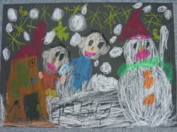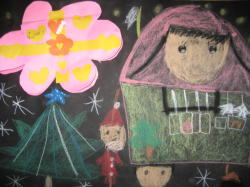 クレパスで自分のほしいプレゼントを描きました。