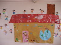 お家を画用紙で作りました。パーティーの始まりです!