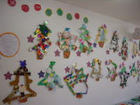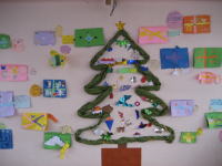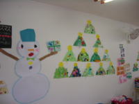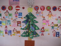 みんなで大きなクリスマスツリーを作りました。