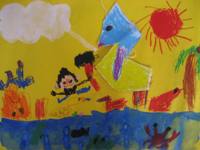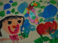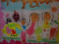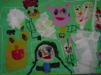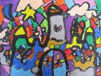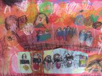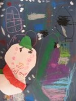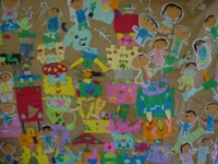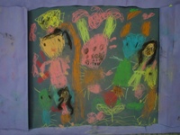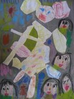 私がおばけの国へ行って、クリスマスパ-ティしているところ。私のママがケーキ持って来てくれて皆、喜んでる。