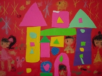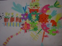 「観覧車チーム」に分かれて遊園地を作りました。