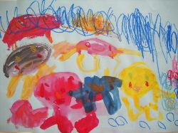 きれいな色のとろりん絵の具を出す、とろりん虫。