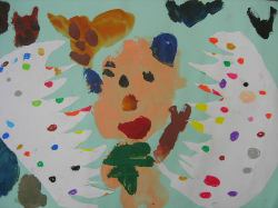 天使がやってきて、クリーム食べてる。