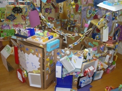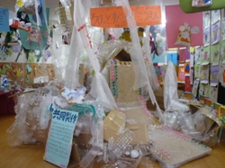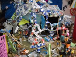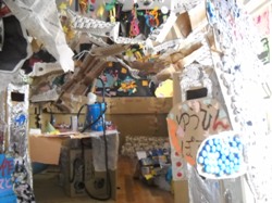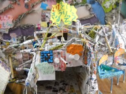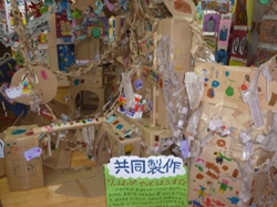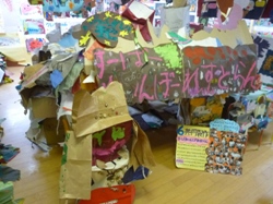 皆で作った「さんかく星人マンション」に逃げ込みました。