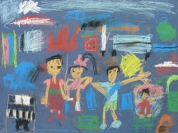 みんなで音楽聞いて踊って遊んでる。