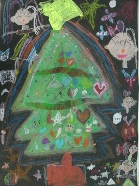 ツリーを私とお友達が見てるところ