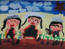 お友達と一緒にみかんとっているところ