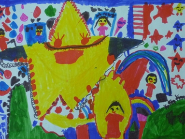 虹のトンネルや小さい星の乗り物がいっぱいある。