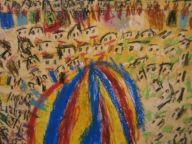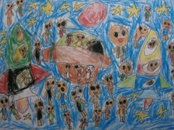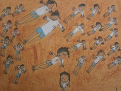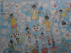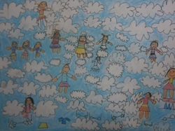 私とお友達が雲の世界でプカプカ浮かんでる。