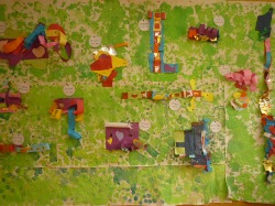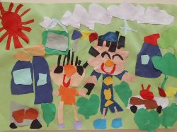 道、海、線路、空、乗りものに必要な場所、物を作りました。