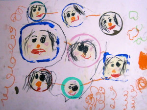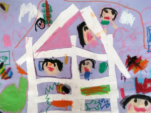 家族4人がいる。小さなお部屋には、となりの知らない子がいる。