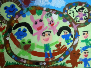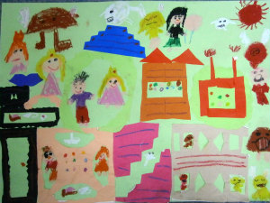 たくさんのお部屋があって、パパやママやアンパンマンやおじいちゃんやおばあちゃん、たこさんとかいっぱいいてる。