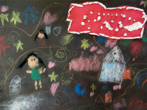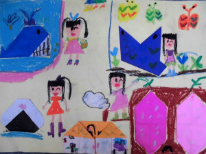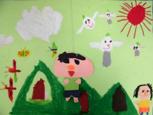 雲の上の野原に、私と妹が遊びに行って、